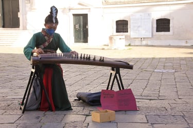 Fevrier 2022, ma troisième présence dans la cité des Doges. Mon métier auprès des enfants, ne pouvait qu'éveiller ma curiosité concernant Carnaval. Je serai épuisé de marcher à la recherche des costumés, un peu naïve en découvrant que beaucoup de Français se trouvais derrière ces costumes. Mon sentiment était partagé entre magie,et fatigue. Le défilé de l'été précédant laissant une empreinte magique que je ne retrouverai pas.