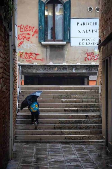 Le temps de rebrancher le chargeur pour l’appareil photo, je suis repartie…je réalise que j’aurai vu tous les temps à ici: neige, brouillard, soleil, et pour moi la grande découverte: la pluie 🌧️ mais jamais l’acqua alta 🙁.