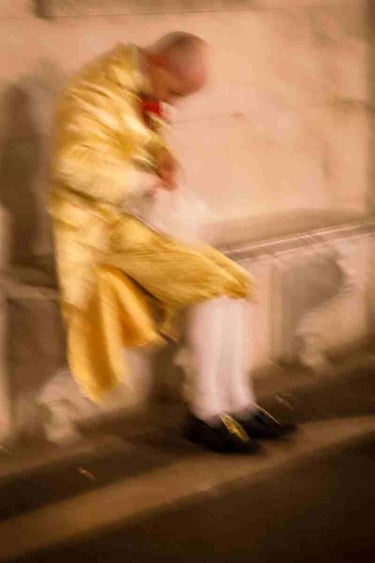 8h30, Arsenal, premier présent: Paul le photographe/costumés, difficile d'echanger avec mon anglais désastreux 😭. . Déjà 1h30, mes mains sont gelées, la place déborde, au café les costumés enlèvent leur 🎭 masques … j’adore ce vacarme organisé.