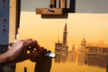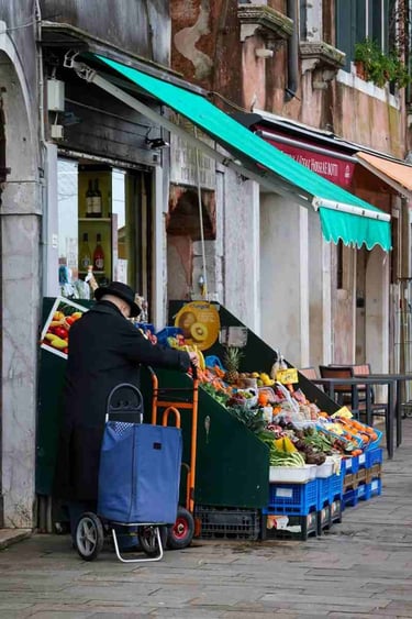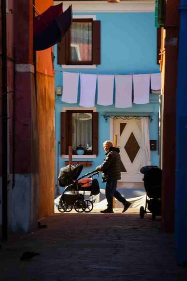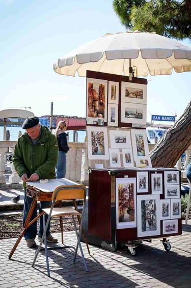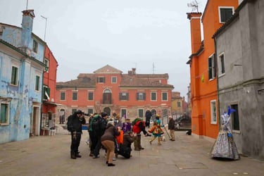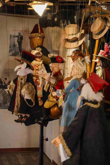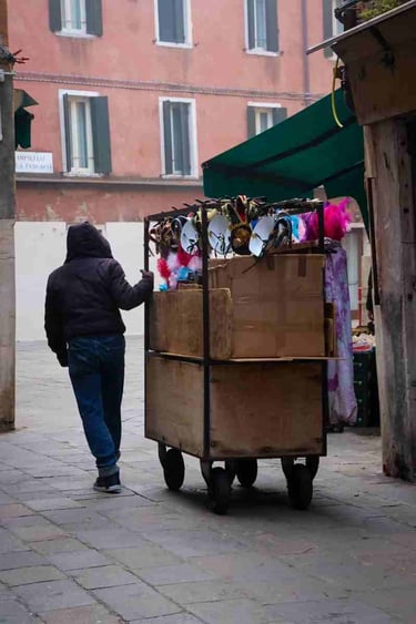 Arrivée à la maison de Pinocchio je passe un sublime moment avec Roberto, le marionnettiste. En sortant des musiciens couvrent le « 1,2,3 soleil » des enfants italiens place Paolo Sarpi. Venise s’éveille dans la joie quand il fait soleil
