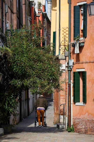 Je réfléchis autrement, j’écoute J’adore le son des enfants qui raisonne en écho contre les murs, le roulement des valises 🧳 brisant la silence côté « campo Francesco », l’eau de la fontaine qui coule dans seau, le roucoulement de la tourterelle, accompagné du vol des pigeons, tout ça sous le ronronnement des bateaux et des mouettes.