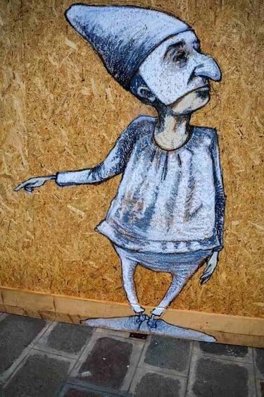 Je marche lentement à la recherche du linge qui fera la photo: rien. J'échappe à l'attaque sournoise d'une mouette, envieuse de ma focaccia et mon jambon cru 🤬.Le petit tour terminé, je pars affronter la foule, et visiter l'atelier de Pinocchio ( merci à brigitte).