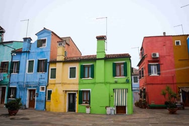 Burano m'attend🥰 Le visage au soleil, je realises que mes lunettes sont dans mon sac à dos a l'auberge 😭. J'ai l'impression qu'une maison sur deux est à vendre. Probablement l'affaire de quelques riches touristes au dépend des locaux 😭.