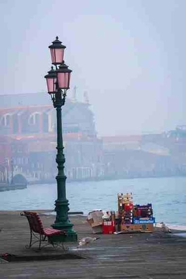 La gare Santa Lucia est en effervescence. Certains costumés rentrent chez eux, d’autres immortalisent l’instant avec une dernière photo. Venise a décidé d’être sous la brume😢. Après avoir généreusement contribué au budget des transports (65 euros, une broutille😡🤬😠), je patiente pour mon vaporetto.