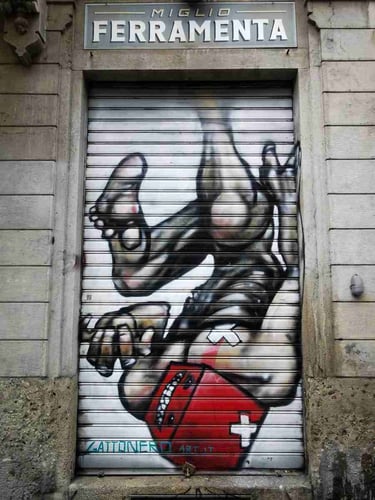Concernant l’auberge de jeunesse, on est dans le ni fait ni à faire . L’architecte devait être pizzaïolo. Un concept, du jamais vu . Je préfère encore faire un tour au Duomo, mais à 20 minutes à pieds, c est la traversée des hommes qui urinent contre les murs avant de s’enfermer dans leur toiles de tentes 🏕️. C est le dernier parfum Gucci qui parfume la touriste et les 5 rues qu’elle a traversé. Et pour accompagner les 100 perches à selfie, c’est une piste de curling 🥌 éphémère qui empêche les pigeons de venir. Bref, je file chez KFC manger les popcorn 🍿 au poulet. Attendre que les rideaux se baissent, parce que Milan c’est aussi des rideaux métalliques qui racontent une histoire 😌.