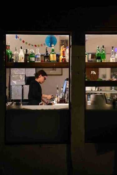 Descente à l’accueil pour la commande de mon : Americano ( en fonction du serveur la quantité varie entre une tasse et un bol..comme le prix du spritz).